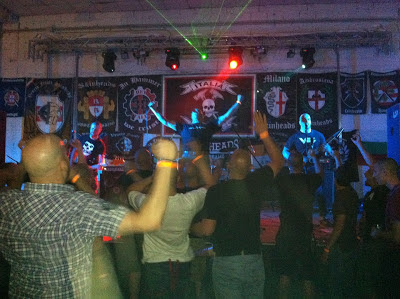 So at Saturday after an early beer start and lunch we headed to the edge of the city where the meeting point of the gig was. On the metro station we met some beautiful Canadian skingirl which couldn’t stand the charm of our gentleman crew and joined our ranks. Just a few meters before the gig venue we were stopped by civil police who took away and pictured our passports. Fuck you “Old bill” it’s not illegal to visit skinhead gigs…still!